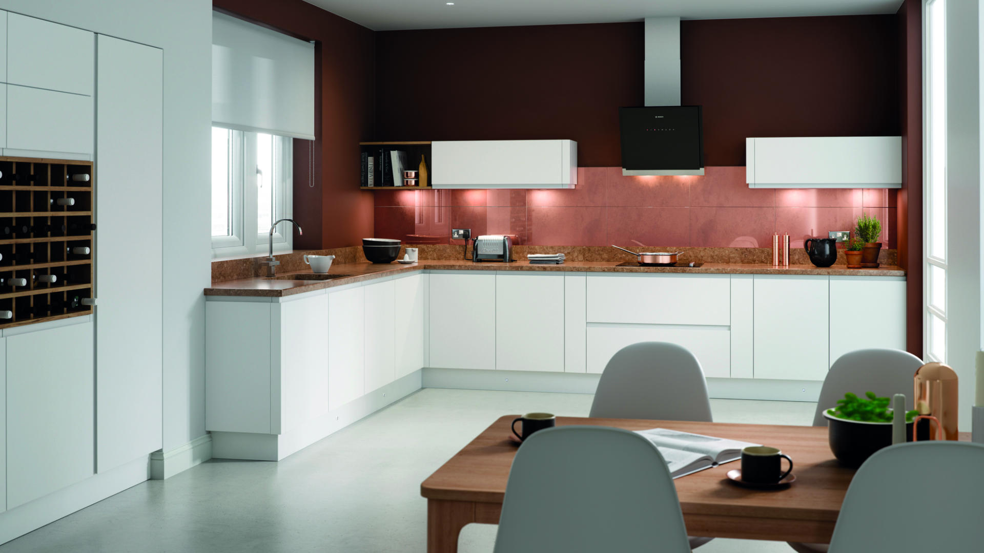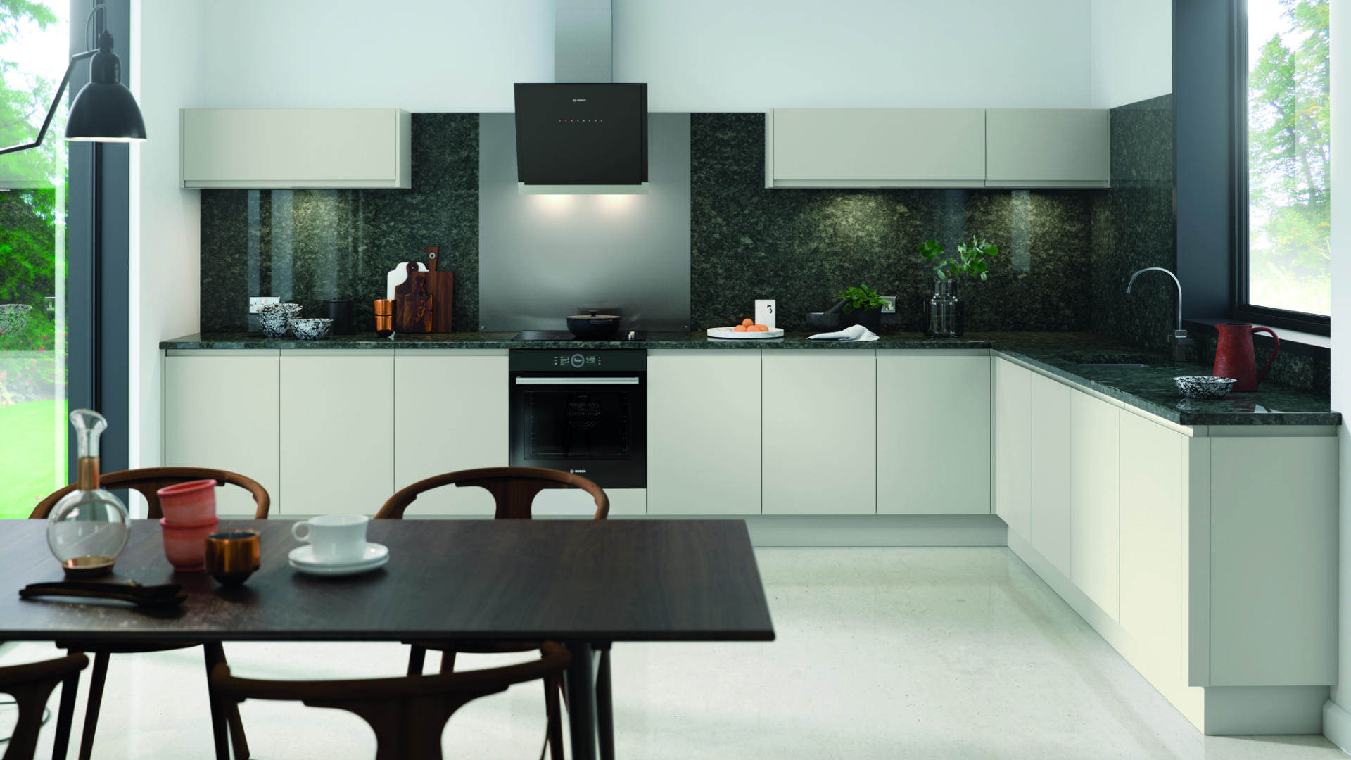 Choose from 6 matt standard colours from stock plus our paint to order service. Add a wide range of accessories, such as glazed and curved doors, and you’ve got the freedom to create everyone’s dream kitchen.